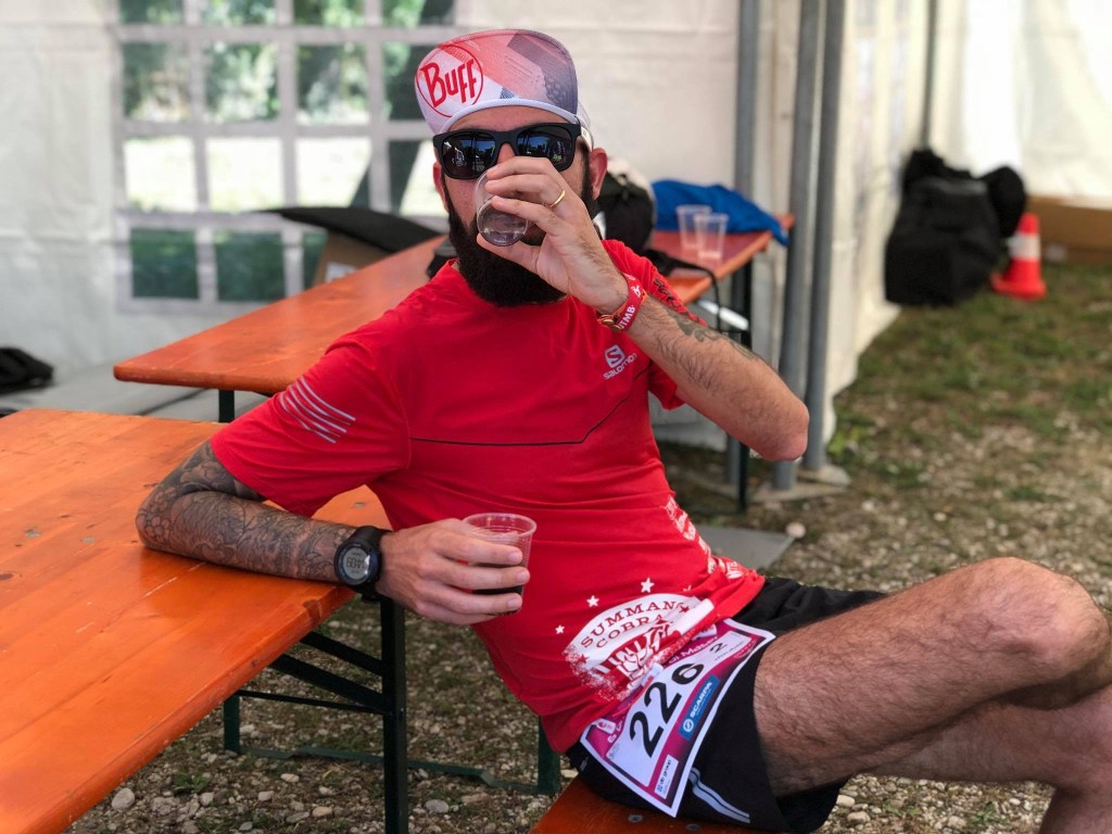 Spingo probabilmente un po’ troppo nei primi 40km della LUT e arrivato a Misurina comincio a sentire crampi. Mi rendo conto di aver bevuto solo acqua (poca) e niente sali, e mi viene un’idea bellissima: reintegrare tutto subito. Mi preparo una flask da 500ml con una bustina di sali e me la bevo alla goccia. Faccio due km e sulla salita verso l’Auronzo ho ancora crampi (alle gambe, per ora…) e penso che forse la flask non è stata abbastanza per reintegrare, quindi mi butto giù anche una fiala di magnesio/potassio PowerBar. Il mio stomaco mi manda affanculo e dal km 45 all’arrivo (km. 120) tutto quello che sono riuscito a buttare giù è stato solo brodo.
